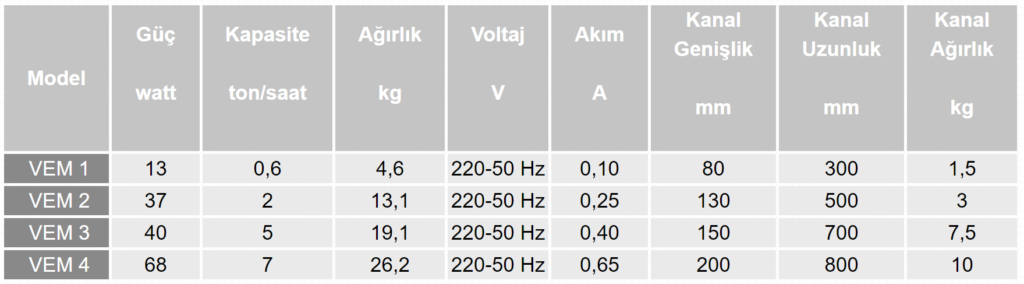 Gıda, ilaç, kimya gibi sanayi sektörlerde granür ve toz ürünlerin dozajlama veya elenmesinde kullanılan elektromagnetik vibratörler hız ve kapasiteye bağlı olarak dört çeşit ürün ile hizmetinizdedir.