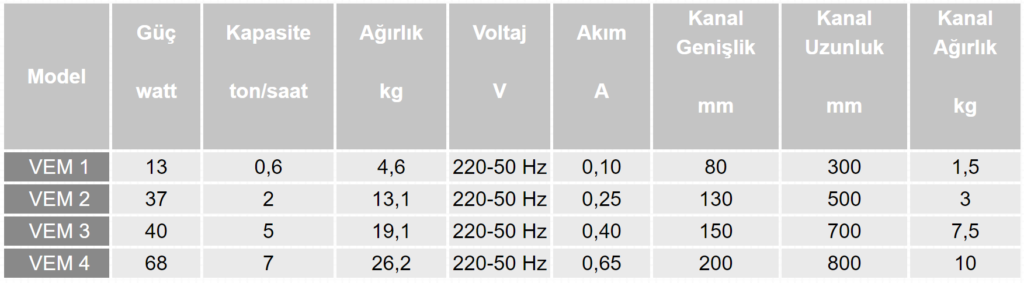 Gıda, ilaç, kimya gibi sanayi sektörlerde granür ve toz ürünlerin dozajlama veya elenmesinde kullanılan elektromagnetik vibratörler hız ve kapasiteye bağlı olarak dört çeşit ürün ile hizmetinizdedir.